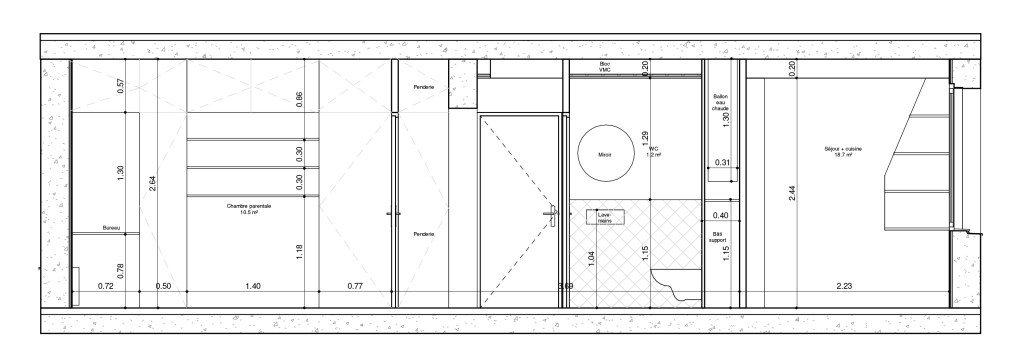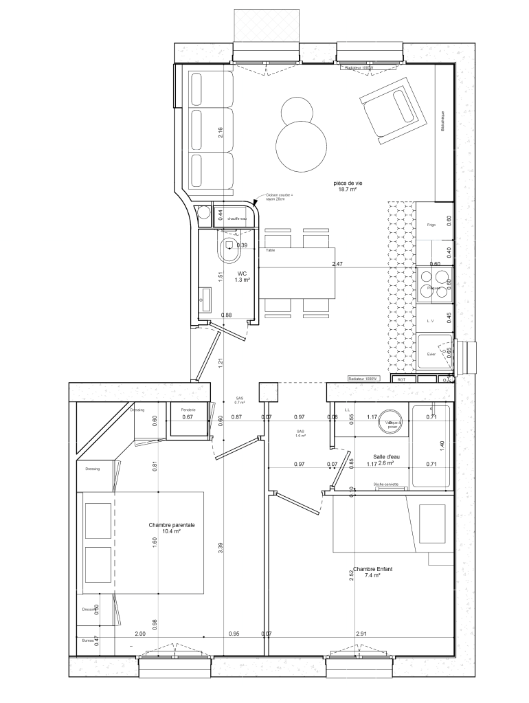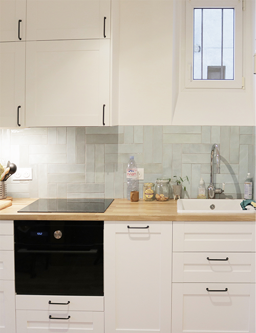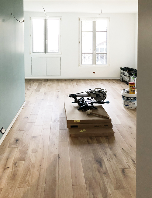 Rénovation intérieure d’un petit appartement en région parisienne pour un couple avec jeune enfant.